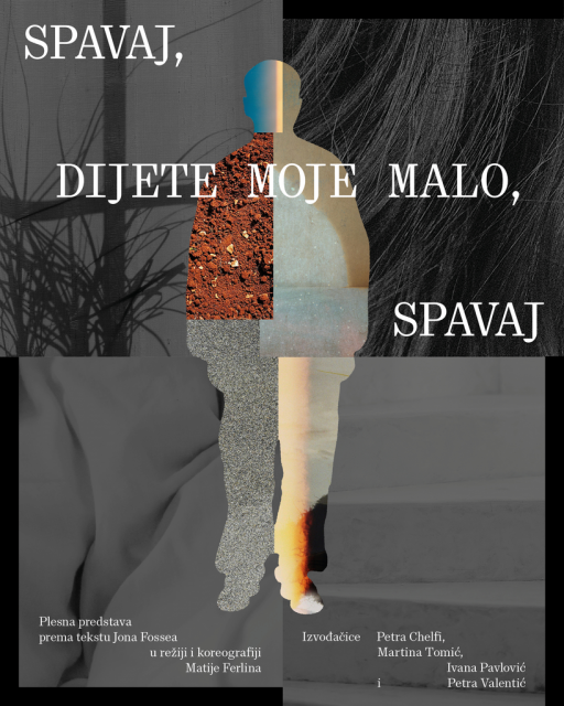 Sleep My Baby Sleep is a dance performance based on the play by Jon Fosse, directed and choreographed by Matija Ferlin in collaboration with performers Petra Chelfi, Martina Tomić, Ivana Pavlović and Petra Valentić. The work explores an unstable performative space that constantly collapses and re-establishes itself. Through fragmented gestures and micro-actions, the performers do not embody characters but become affective carriers of the atmosphere — bodies oriented toward perception, constantly reading invisible tensions between movement, text and space.