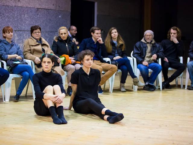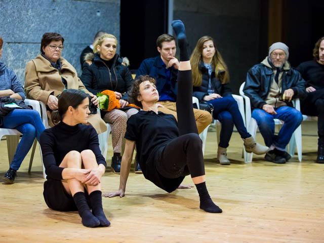 The performers start from the assuption that the bodies exposed to each other carry layers of dance material conditioned by the history and traces of all previous performances and choreographic solutions and, during the process, repetitive performances and each other's observation, they develop dance material with the experience of the dance altered after the completion of the process, yet covered with the dancers' individual constitution. In such refined dance material, they find mutual support, choreographic inspiration and the theatrical experience of togetherness (or loneliness).